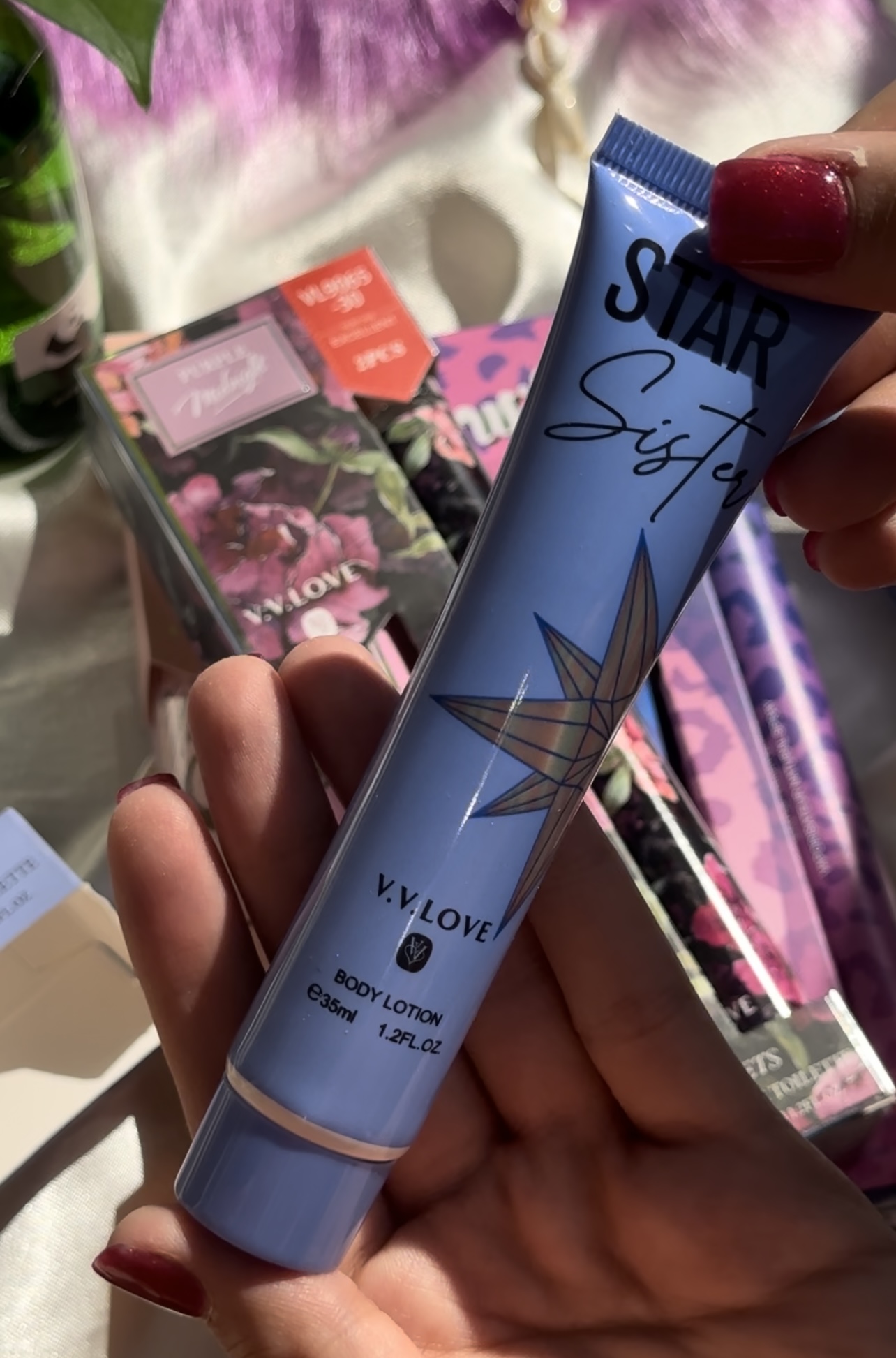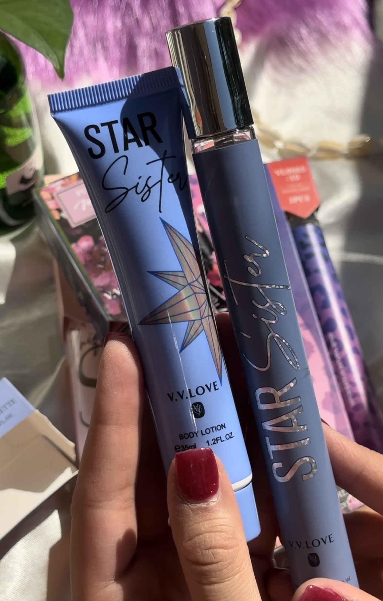 Star Sister عطر و لوسیونی خوشبو، ملایم و دوستداشتنی برای روزهای پرانرژی و دوستانه. این رایحه خنک و گلی–میوهای با حس لطیفش، مناسب استفاده روزمره و قرارهای غیر رسمی است.
