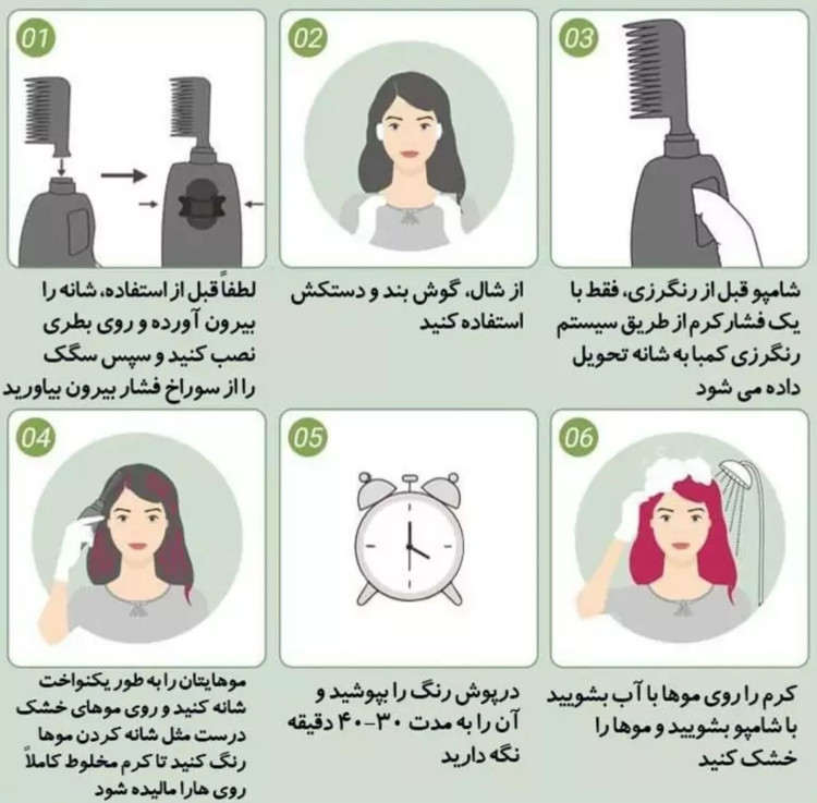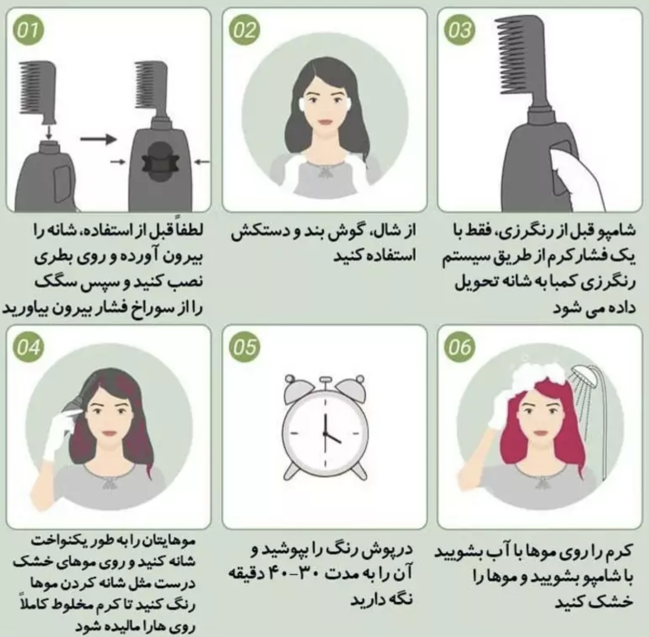 این شانه رنگ، با طراحی ارگونومیک و استفاده بسیار ساده، به شما این امکان را میدهد که در کمترین زمان ممکن موهای خود را به رنگ قرمز گیلاسی زیبا و جذاب درآورید.