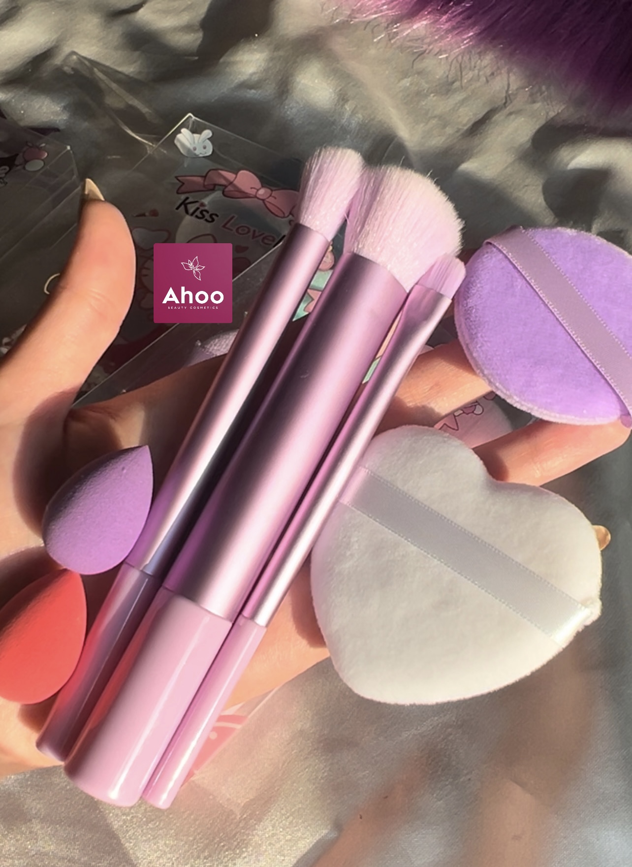 پک ۷ تکه براش و پد آرایشی فانتزی مدل کرومی/بنفش💜